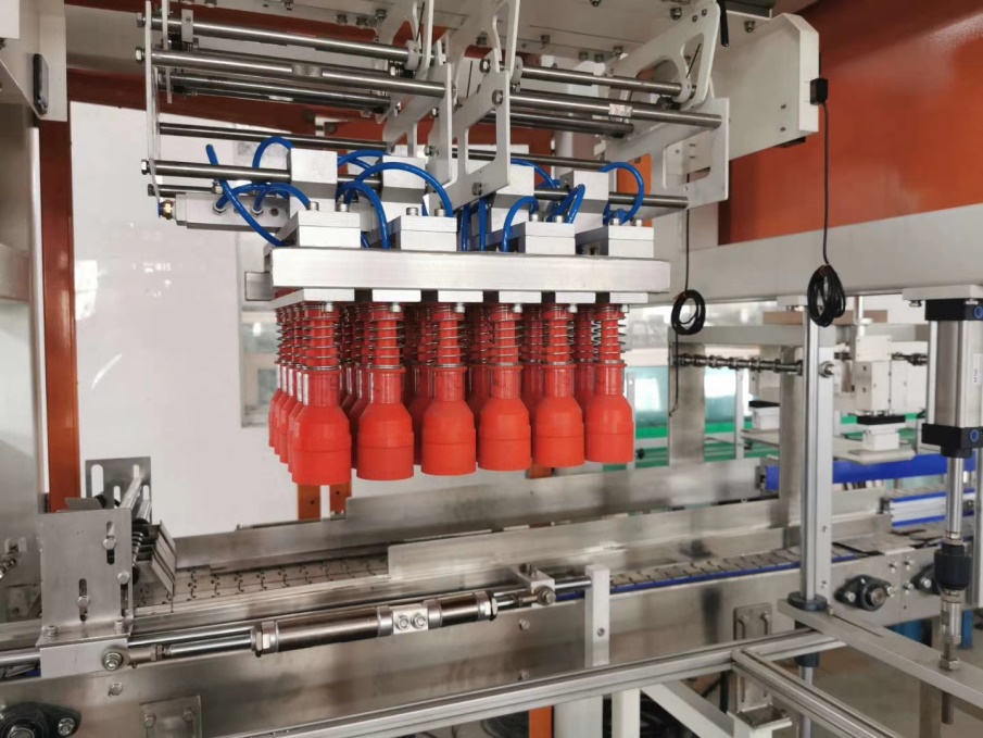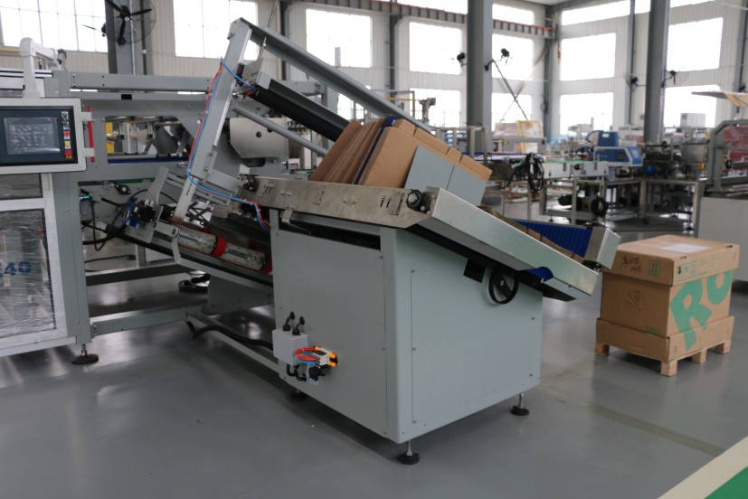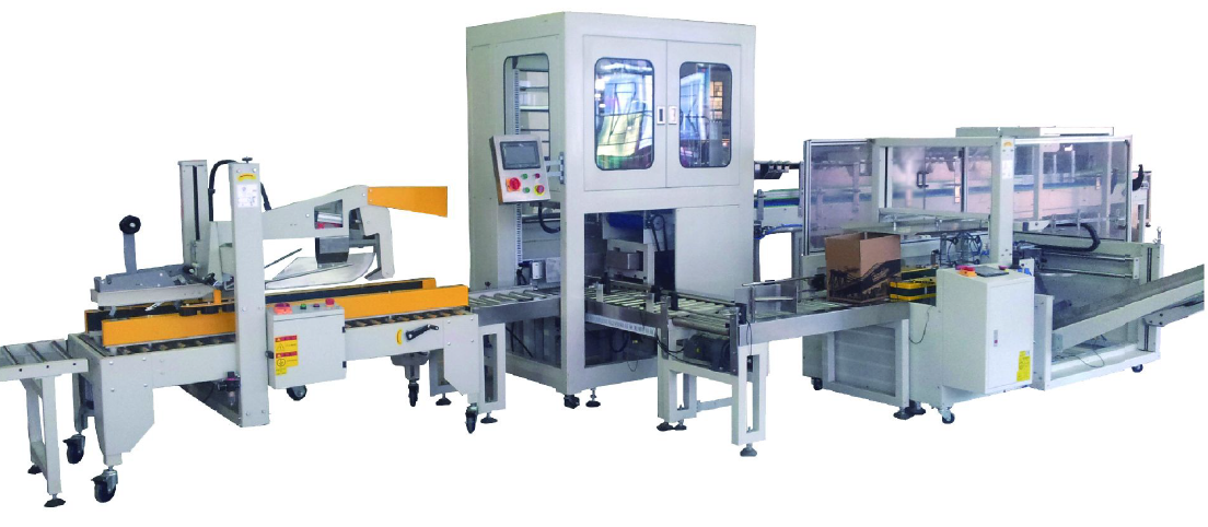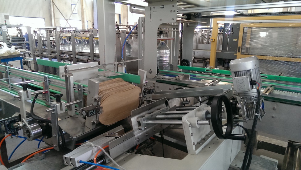 Система полностью имеет 3 машины с подключенным роликовым конвейером. Они являются коробки установочны, коробки выбрать & место машины, коробка герметик и коробку рольганга. Бумажная коробка загружается на картонной монтажной, и коробка дно было заклеивали лентой. Затем формируются коробка отправки в картонный выбор и место машины. Бутылки подобраны с конвейера и помещены в коробку с помощью блока вакуумного удержания. Полная коробка посылает в коробке уплотнитель, чтобы быть герметизирована лентой.